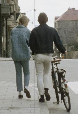 两个年轻人在公寓醒来,边吃早餐边聊天,然后去取单车
